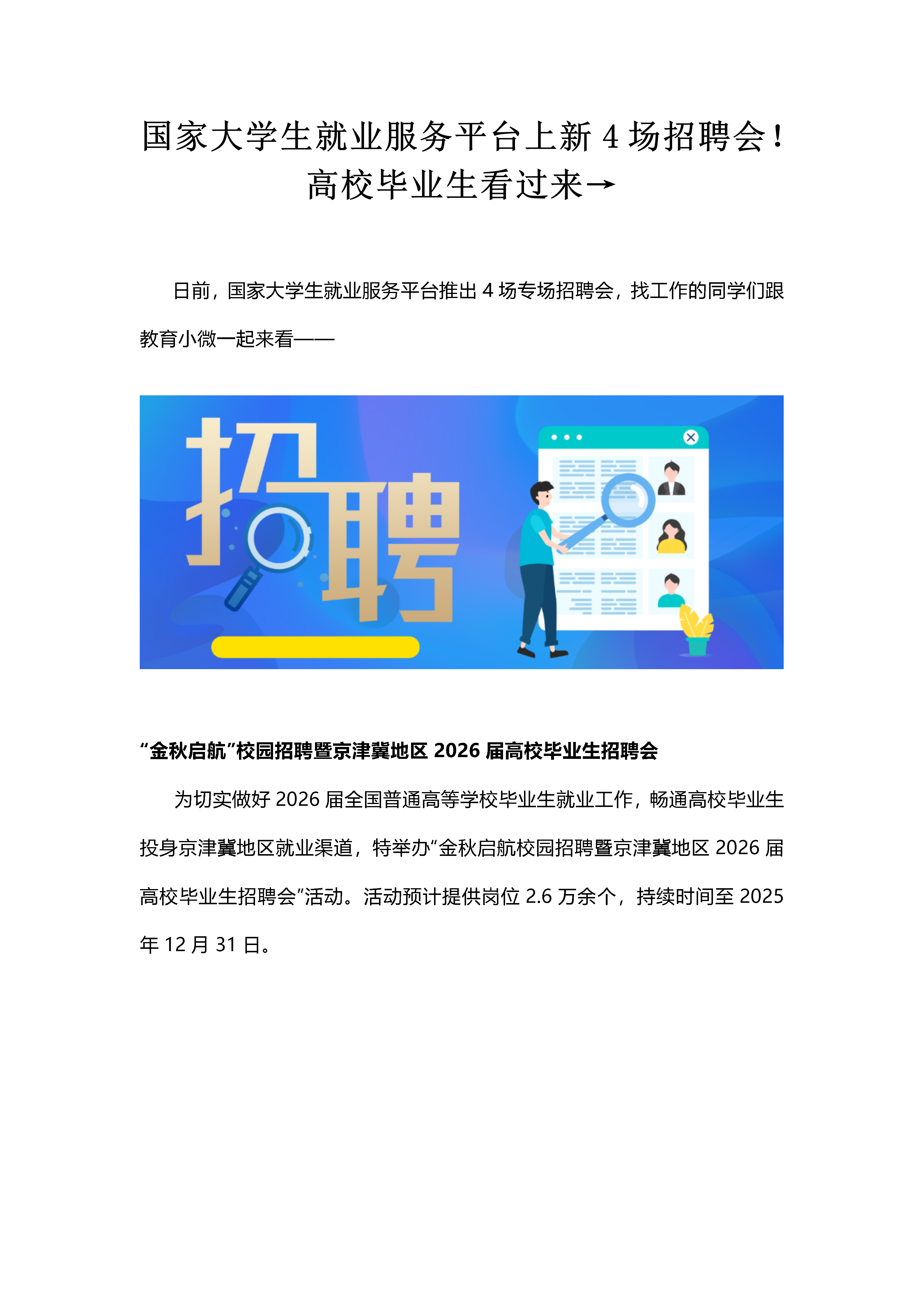 日前,國家大學(xué)生就業(yè)服務(wù)平臺推出4場專場招聘會,找工作的同學(xué)們跟教育小微一起來看——