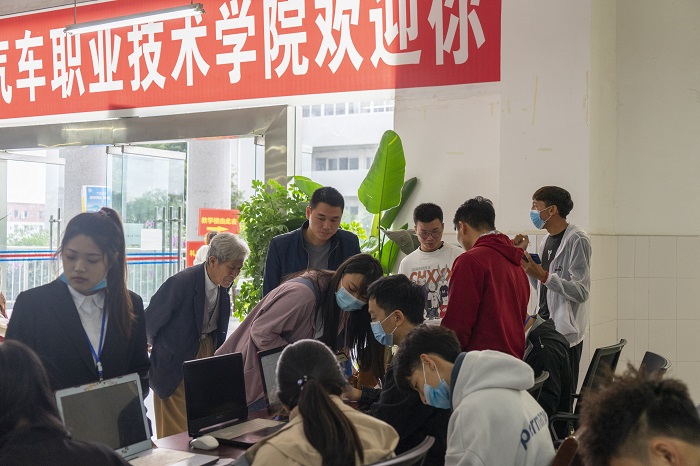 報(bào)到大廳里,提交資料、核對(duì)信息、繳納學(xué)費(fèi)、領(lǐng)取飯卡,每一項(xiàng)流程都有條不紊地進(jìn)行著,報(bào)到現(xiàn)場(chǎng)氣氛溫馨,充滿歡聲笑語(yǔ)。