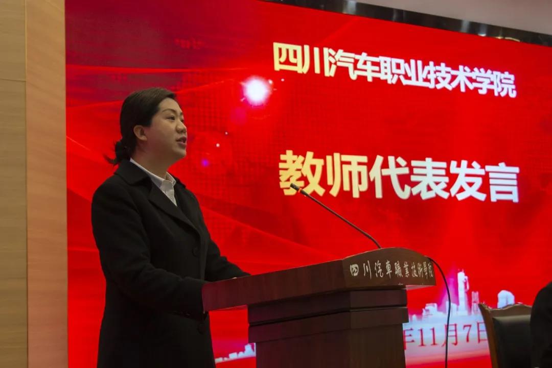 教師代表周一依作發(fā)言,她對學(xué)員們返校學(xué)習(xí)表示熱烈歡迎。她講到,在過去一年的教學(xué)工作中,學(xué)院全力保證提供最好的教學(xué)環(huán)境,最有力的師資和最優(yōu)質(zhì)的教學(xué)服務(wù)。在全體師生的共同努力下,學(xué)員們交出了優(yōu)異的答卷。她希望全體學(xué)員在未來繼續(xù)發(fā)揮人民軍隊吃苦耐勞、團(tuán)結(jié)守紀(jì)的優(yōu)良傳統(tǒng),珍惜學(xué)習(xí)機(jī)會,轉(zhuǎn)換自我角色,不斷提升職業(yè)技能水平,為川汽之榮努力學(xué)習(xí),為祖國之強(qiáng)貢獻(xiàn)力量。