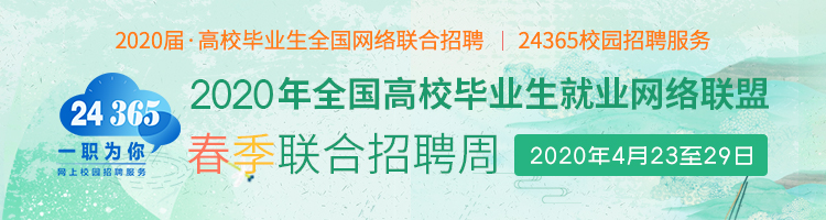 (一)2020年全國高校畢業(yè)生就業(yè)網(wǎng)絡聯(lián)盟春季聯(lián)合招聘周,2020年4月23日至29日。