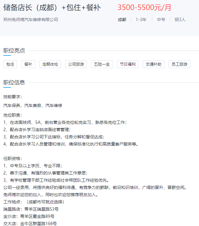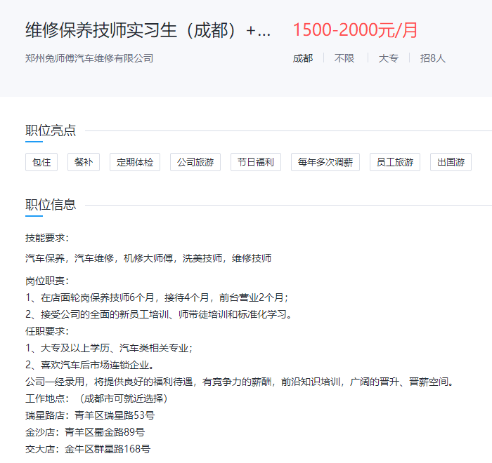 1、招聘崗位:實(shí)習(xí)技師/保養(yǎng)技師/儲備干部