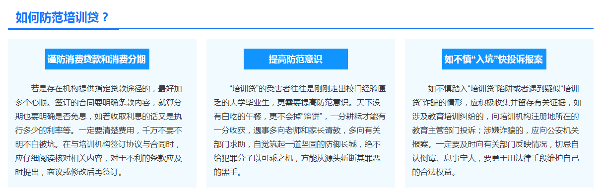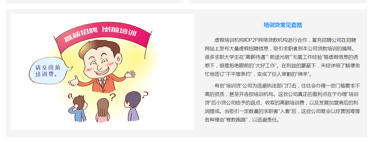 據(jù)相關(guān)報(bào)道,一些不法培訓(xùn)機(jī)構(gòu)利用學(xué)生在不同求職季急于找到工作的不安心理,設(shè)下騙局,使許多學(xué)生在不清楚合同內(nèi)容的情況下卷入“培訓(xùn)貸”的層層陷阱,致使有些大學(xué)生還沒入職便背上高額貸款。那么,“培訓(xùn)貸”的常用套路有哪些?大學(xué)生怎樣防止被騙?一起來看!