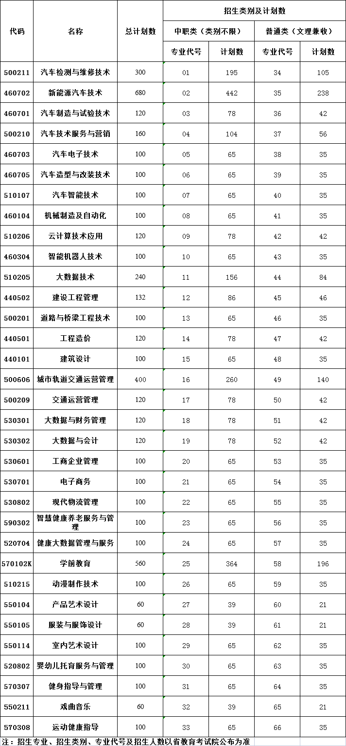 四川汽車職業(yè)技術(shù)學(xué)院2022年單獨(dú)招生計(jì)劃表